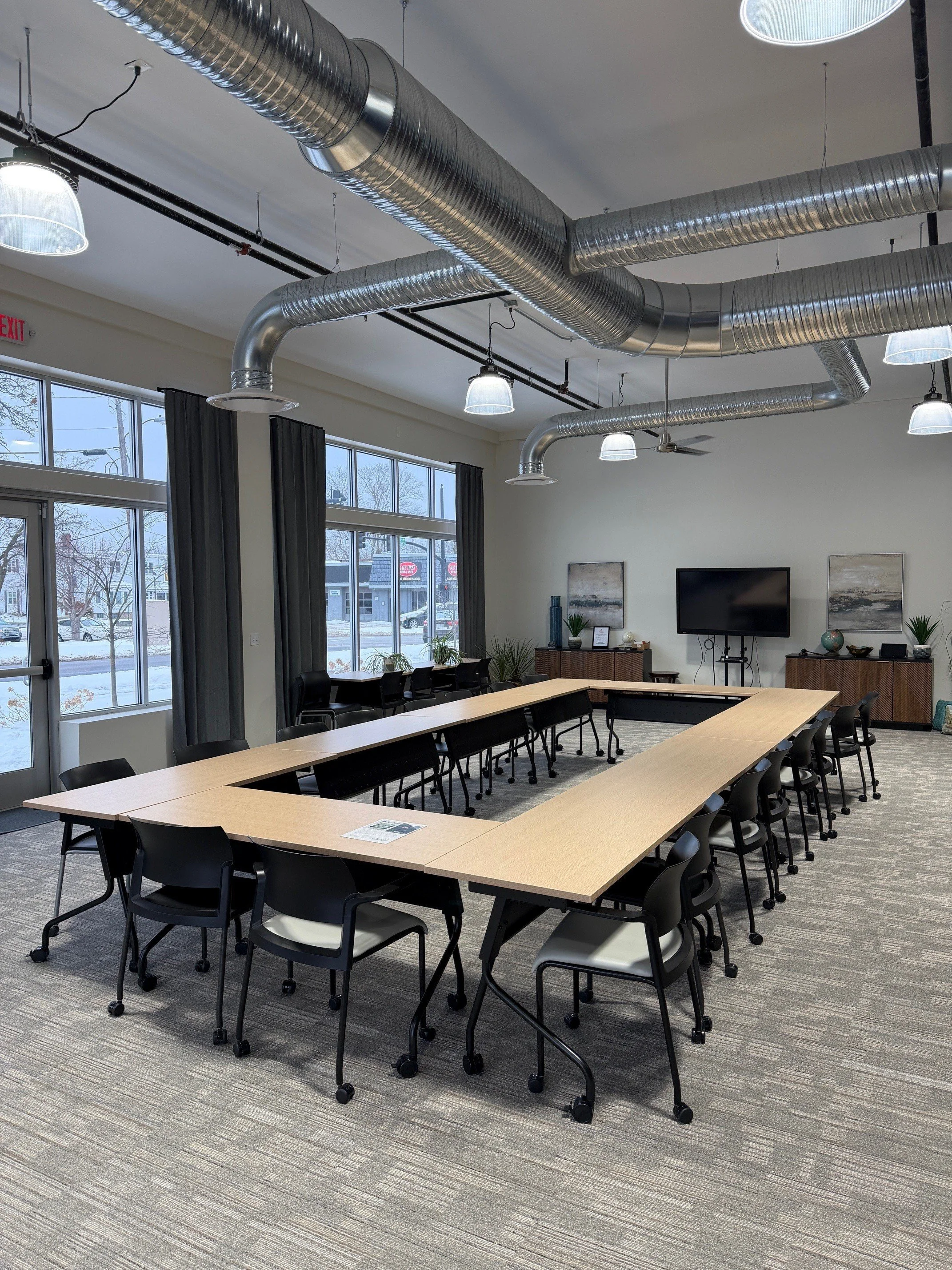 Our spacious main room offers flexible table configurations to accommodate meetings, workshops, and seminars of all kinds.